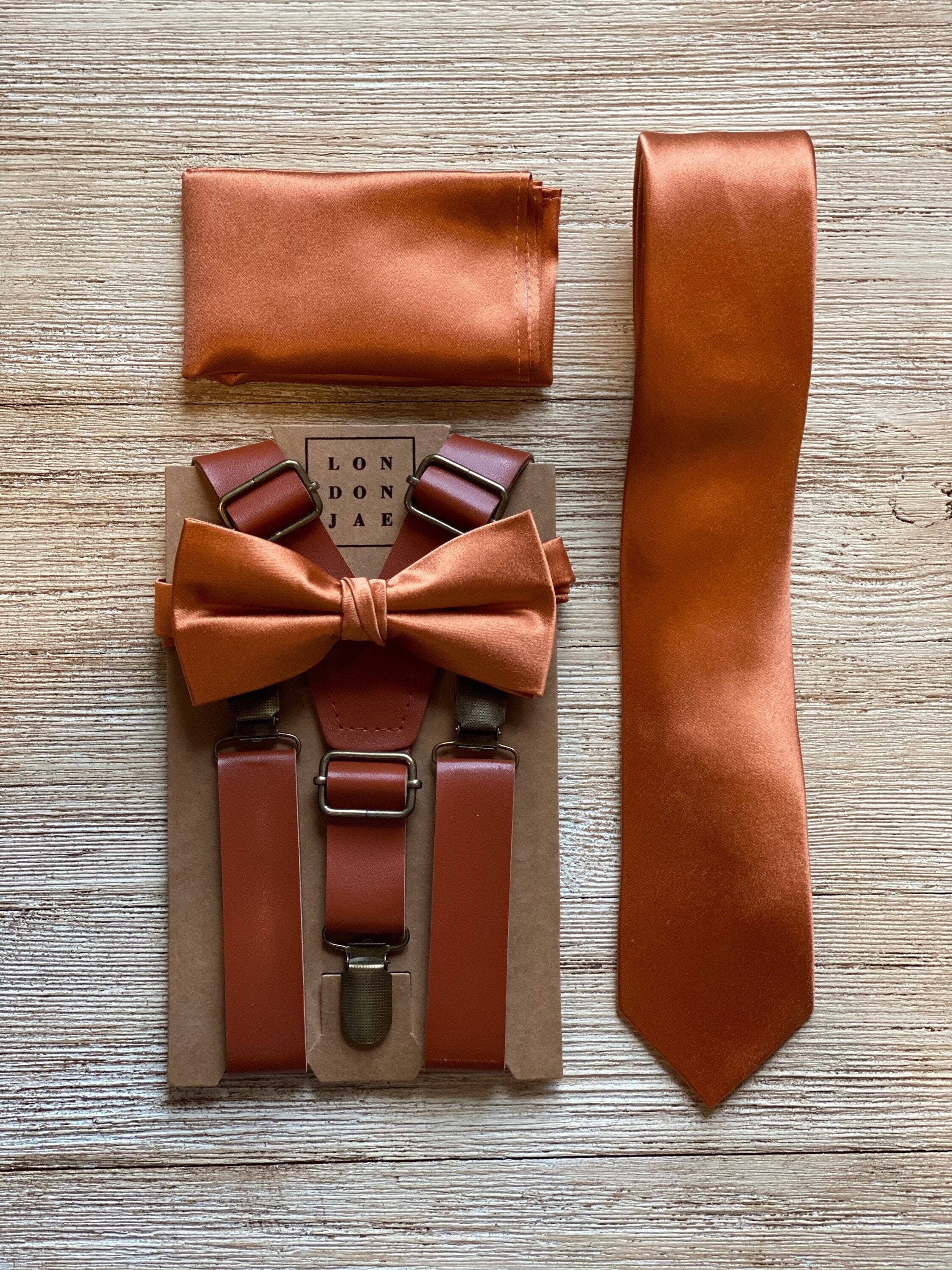 Sunset Burnt Orange Silk Satin Bow Tie Cognac Brown Groomsmen Etsy Uk